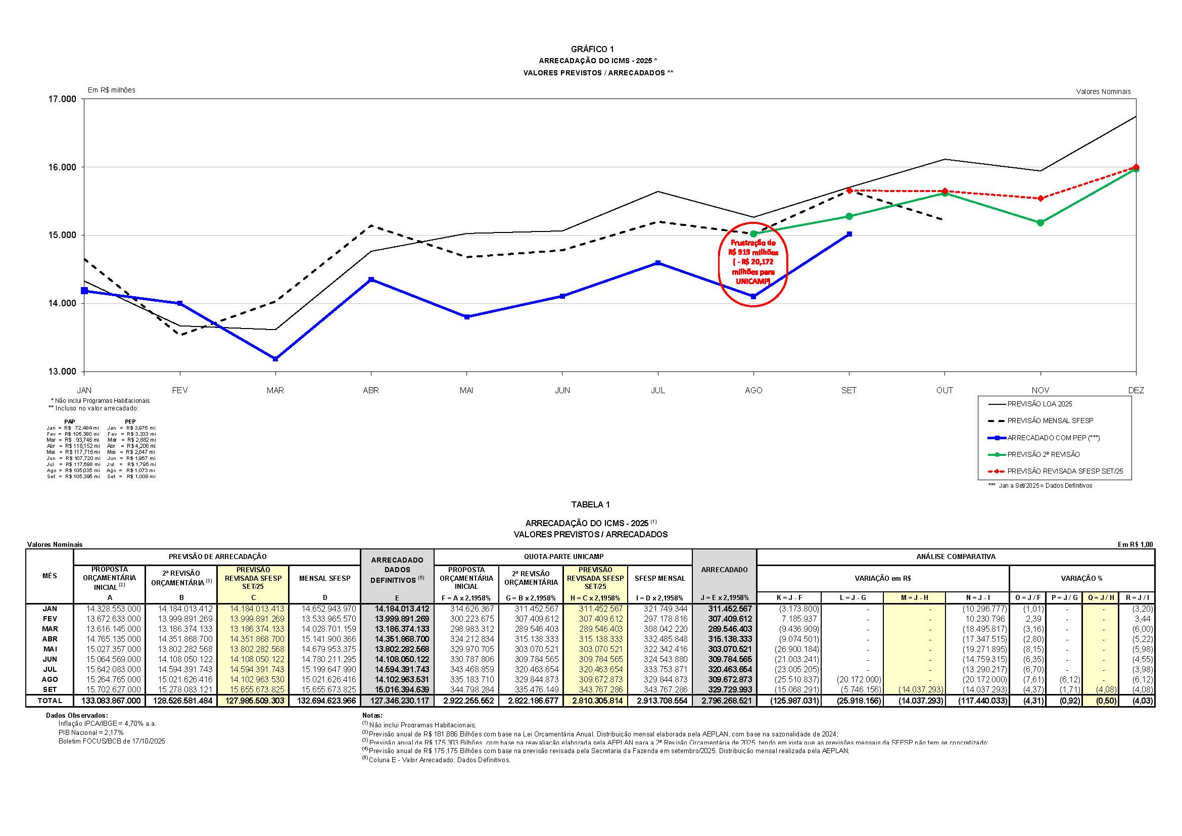 Gráfico 1 – Valores Previstos / Arrecadados