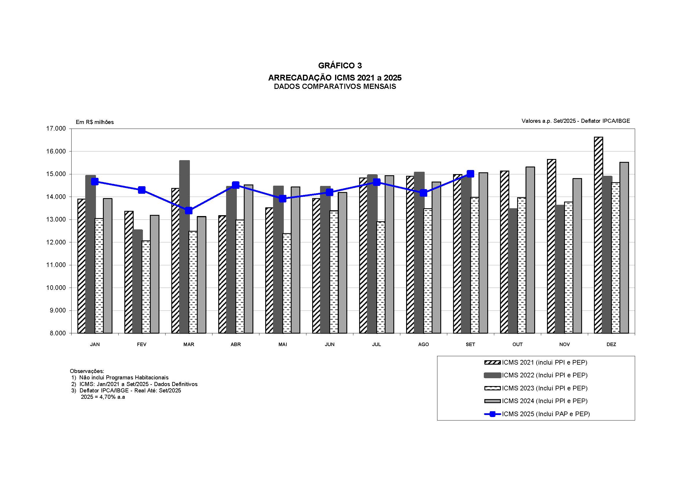 Comparativo de Arrecadação do ICMS – 2021 a 2025